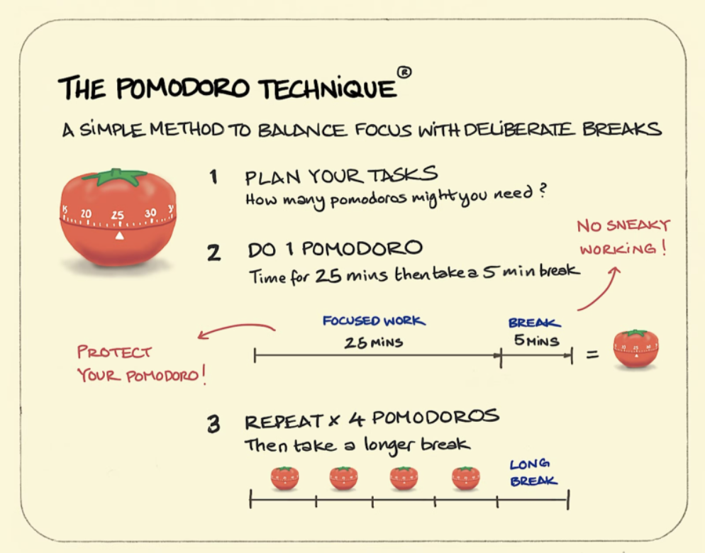 The Pomodoro Method is a time management technique where work is divided into 25-minute chunks